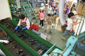 スクール生らはJA野菜選果施設も訪れ、ナスやメロンが人や機械で選別される様子を見学しました。昼食はJA女性部員らが、JA直売所に並ぶ旬の野菜を使った手料理を用意。新タマネギとトマトのマリネや野菜スープ、おにぎりなどを味わいました。
