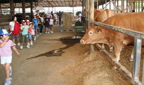 |  |  | 安全・安心な地元産牛肉は最高! |  |  |  | JA熊本市は7月18日、あぐりキッズスクールを開き、児童52人が牛乳やヨーグルトなどの生産工場と肉牛牧場を見学しました。 らくのうマザーズ熊本工場(熊本市戸島)を訪れたスクール生らは、県酪連職員の案内で場内を歩いて見学。1㍑入りの紙パック2万4500本を1時間で充填する製造ラインや130度の高温で殺菌処理される工程など、県内の酪農家が生産する生乳が、パックに詰められて商品になるまでの流れを見て回りました。