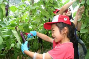 |  |  | 手料理を作ってもらったJA女性部の方々 |  |  |  | JA熊本市は6月26日、同市会富町であぐりキッズスクールを開き、児童41人がナスの収穫体験と選果工程を見学しました。