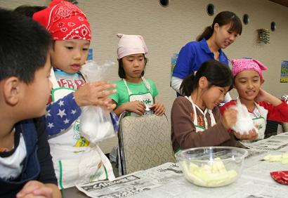| 袋をシャカシャカ振って「フライドナス」作りも体験 |