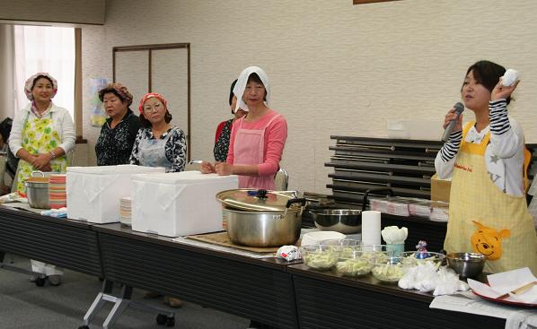 | 調理指導と料理を作ってもらった女性部の方々 |