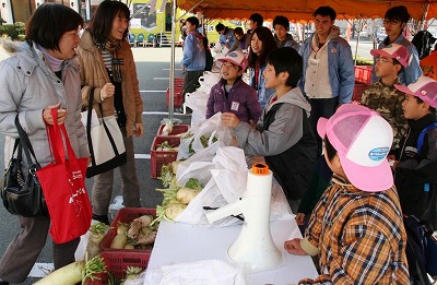 JAが初めて開いた「夢未来農業祭2010」のイベントであぐりキッズコーナーを出店。消費者や地域住民に朝採り野菜を食べてもらおうと、スクール生らは早朝から同市会富町のあぐりキッズ農園に出向き、JA青壮年部の協力を得て栽培した野菜を収穫。袋に詰め合わせたダイコンやブロッコリー、スティックセニョールなどを特設テント内に並べました。