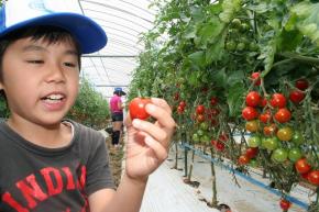 |  |  | トマトの収穫をするスクール生 |  |  |