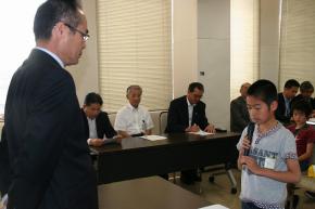 |  |  | 「5つの約束」を読み上げる児童代表 |  |  |  | JA熊本市は5月19日、本店で2012年度第8期あぐりキッズスクールの開校式を行い、市内19校の小学生72人が入校しました。 野原泰夫専務が「農作業体験を通じて、農業や食の大切さを学んでほしい」と訓示。児童代表が「食べ物を大事にします」など同スクール5つの約束を読み上げました。