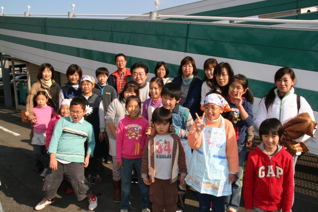 稲刈りを体験したスクール生と保護者
