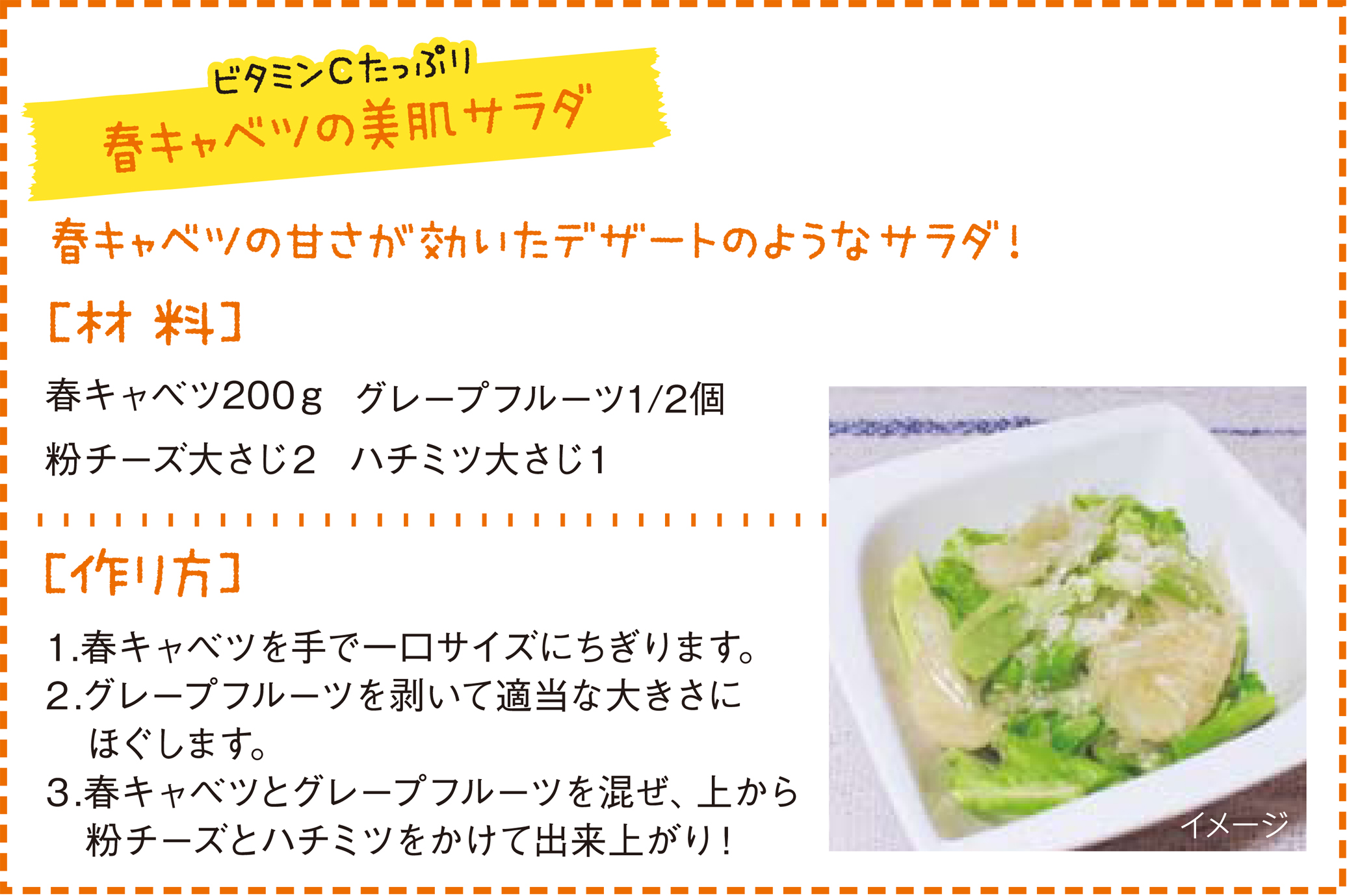 「春キャベツは、甘みがあり生で食べるのがオススメです。普通のキャベツは、食感があるので火を通す料理に向いています」。
