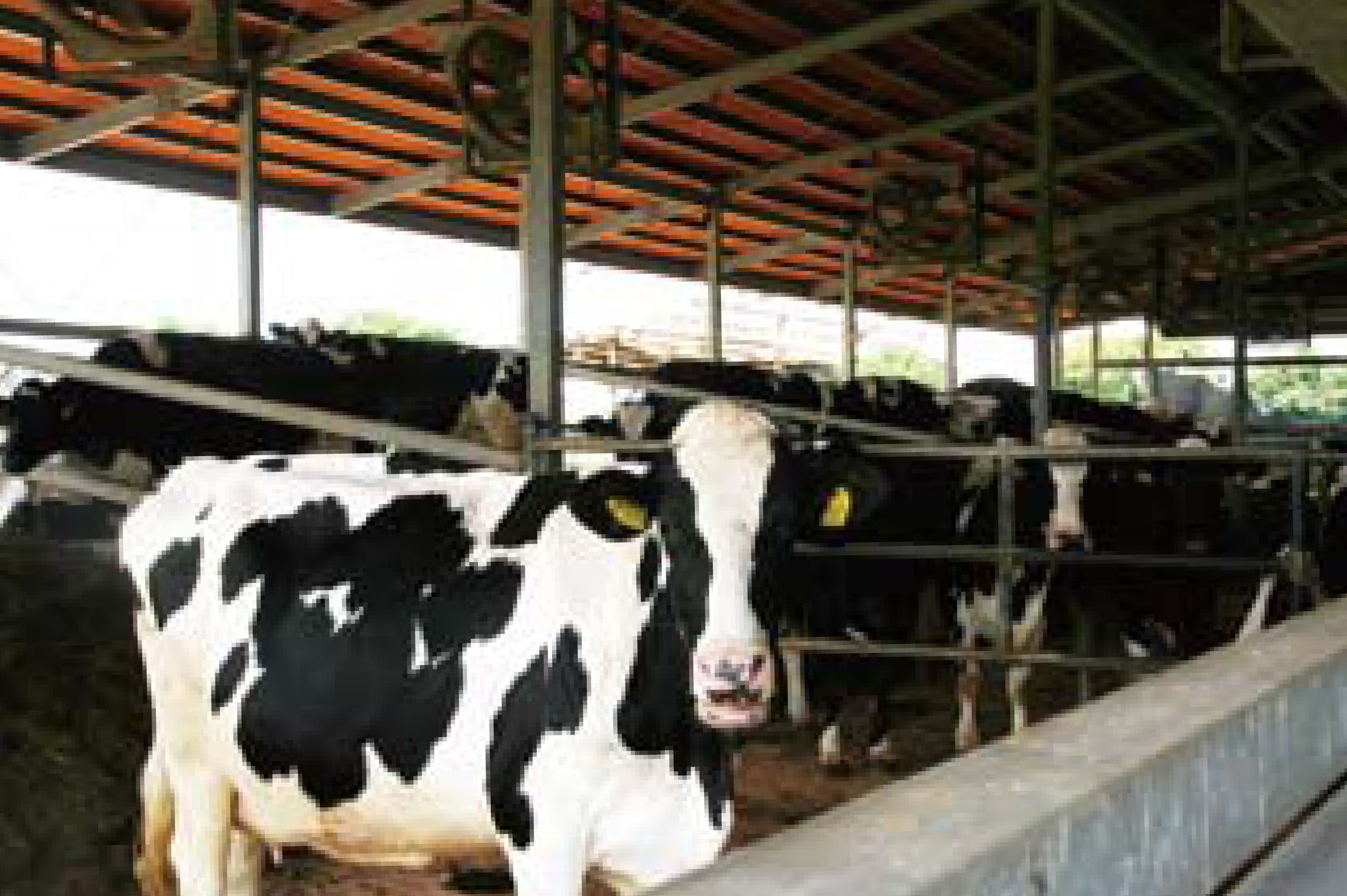 母牛85頭、子牛25頭、計110頭の乳牛を育てています。朝夕2回の乳搾りの他に、牛舎の掃除、飼料の準備、飼料となる