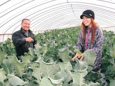 山野友和さん(33)、珠衣さん(31)夫妻。熊本農業高校、熊本県立農業大学に進学し、平成12年に実家の