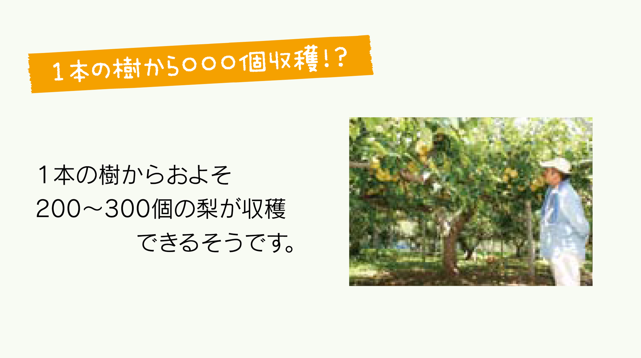 梨は、剪定(せんてい)、摘蕾※1、受粉、摘果、袋がけ、収穫と、ほぼ1年かけて育てていきます。
