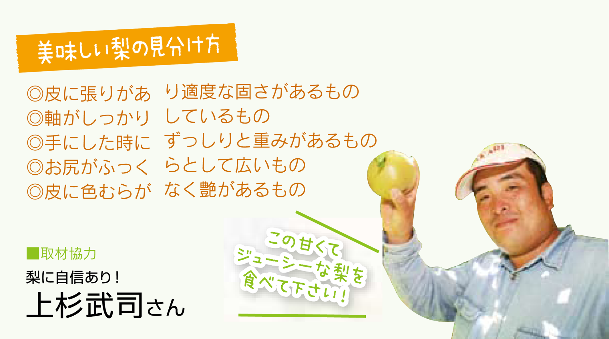 今回は、同地区で三代にわたり梨を栽培している上杉武司さんを訪ねました。