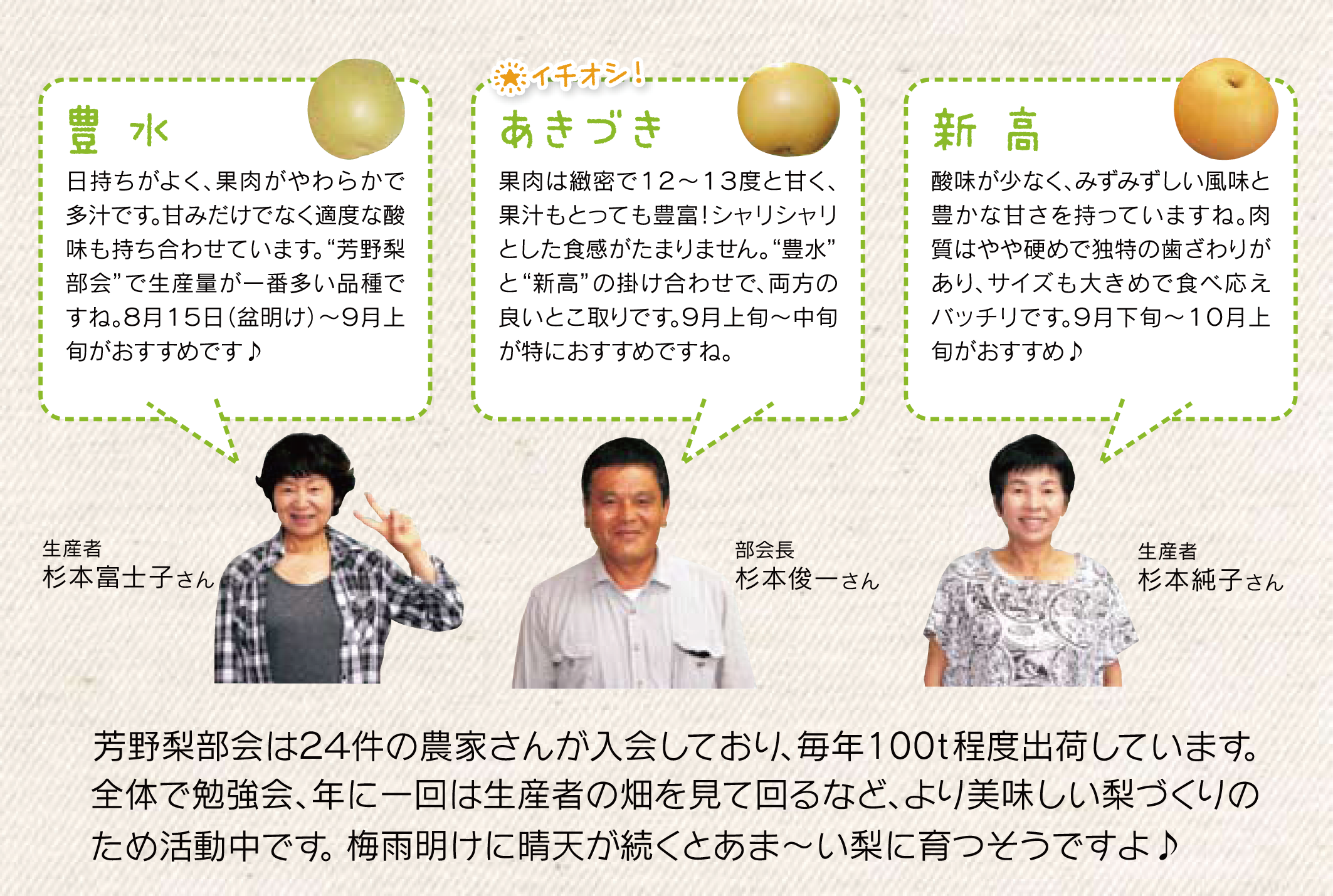 上杉さんが加入しているJA熊本市芳野梨部会は、部会員全員がエコファーマーを取得。安全安心な梨を生産するため、