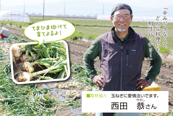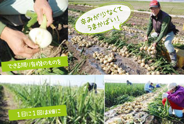 薄い皮をむくと、白く艶々と輝く玉ねぎが顔を出し、口に入れると甘味が広がり思わず笑みがこぼれます。