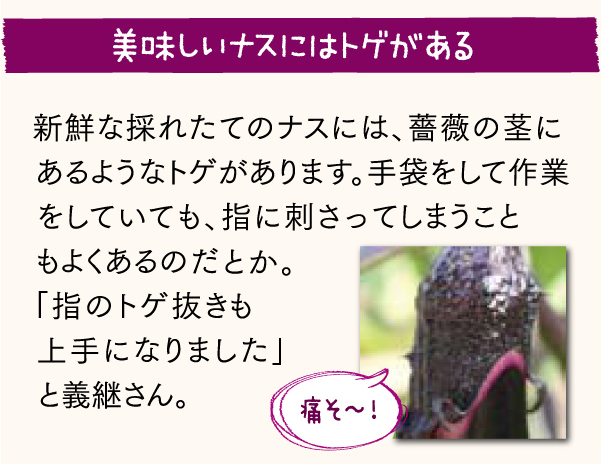 父親のナス作りにかける情熱を小さい頃から傍で見てきた義継さん。「一日も早く父親の技術を習得したい」と思い、