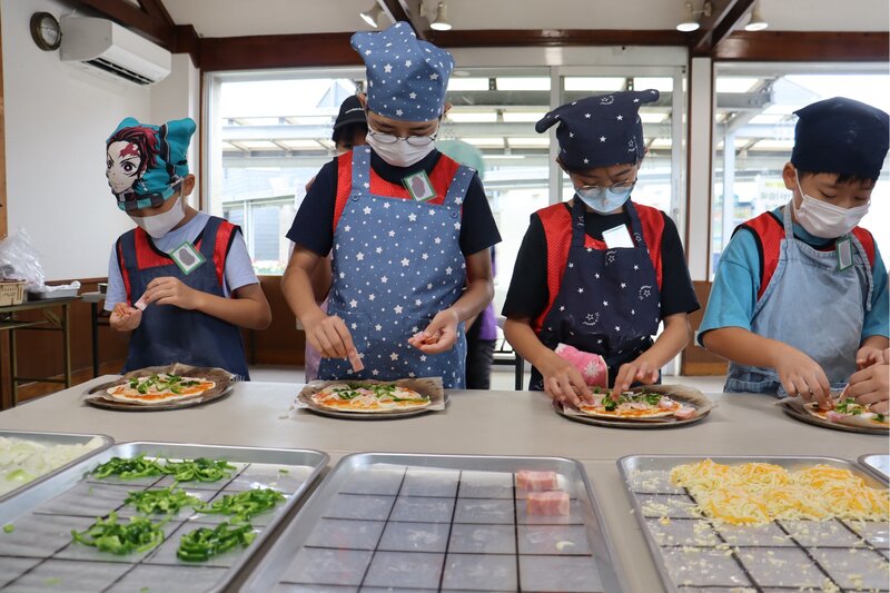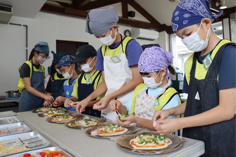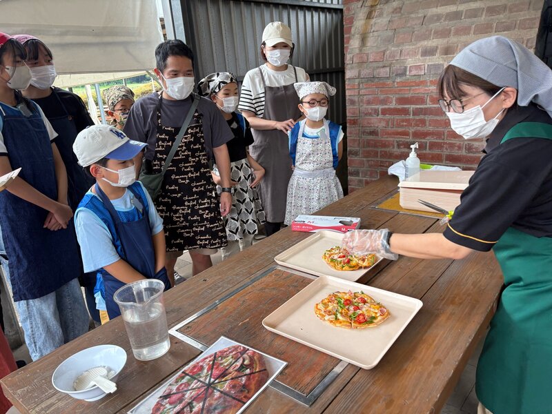 【第4回】ピザ作り体験今回はピザ作りを体験しました。 生地をめん棒でのばし、自分たちで切った野菜やベーコン・チーズなどの具材を思い思いにトッピング! 石窯で焼き上げ、出来たてのピザを家族で味わいました。 |