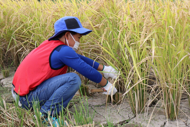 10月18日、あぐりキッズスクール生は野菜選果場の見学と稲刈りを体験しました。