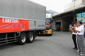 部会長の津田忠雄さん(58)は「良質のものを作ろうと努力してきた結果、非常においしいミカンが出来た。首都圏など大消費地へ向け、品質管理に注意して安全運転で届けてほしい」と呼び掛けました。