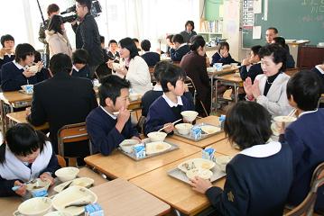 熊本市教育委員会とJA熊本市女性部は1月19日、同市川口町の川口小学校を訪れ、児童と一緒に給食を食べて交流しました。生産者との交流で児童の食育を推進しようと、熊本市学校給食会が共催しました。