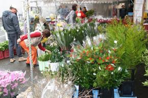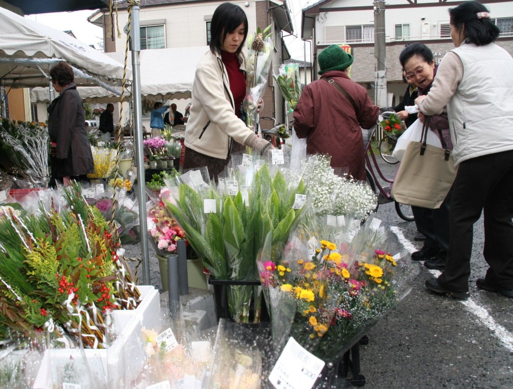 | 正月用生け花などを買い求める消費者(28日、熊本市で) |