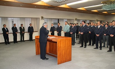 年頭にあたり、村上一也組合長ら役員5人があいさつ。村上組合長は「本格実施される農家の戸別所得補償の注視に加え、環太平洋経済連携協定(TPP)や農協事業分割化の問題もJAグループが一体となり断固反対の運動を展開していこう。組合員の皆様から信頼される組織となるための事業展開を職員一人ひとりが自覚をもって取り組んでもらいたい」と訓示しました。誓いの言葉として力合支店の布川雄一朗さんが「職員一人ひとりがJAの果たす役割を自覚し、組合員や利用者から信頼されるJAを目指してまいります」と力強く語りました。