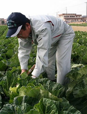 JA熊本市キャベツ部会はエコファーマーの70人が40ヘクタールで栽培。堆肥主体の土作りを基本に、持続性の高い農業生産方式を実践します。部会では、霜に強く低温でも生育が旺盛な春玉系品種「彩々丸」の生産を推進。葉質の柔らかさと甘みが特徴で、収穫間際に寒い時期を迎えるため病害虫被害もほとんど見られません。