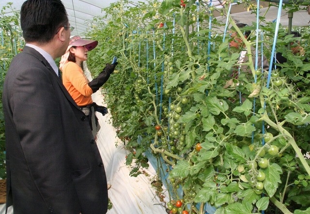 市場関係者らは同市西南地区で栽培が盛んなナスやトマト、ミニトマトの他、北部地区のアールスメロンと大玉スイカの施設圃場を視察。生育概況をJA営農指導員が説明し、栽培技術面の質問に生産部会長らが応じました。寒波などで着果や果実肥大への影響が懸念されましたが、生産努力と天候回復により出荷量は増加するとの見通しを示しました。