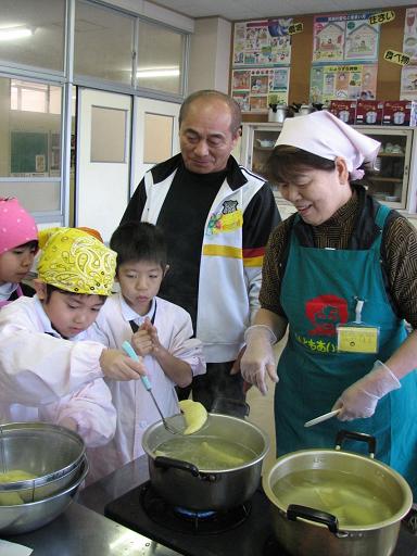 JA熊本市供合女性部(支部)は、熊本市託麻北校区で地元PTAや地域団体と連携し、さまざまな活動を通じて地域貢献に積極的だ。地元の託麻北小学校には6年程前から「ちゃぐりん」など食育関連2誌を毎月贈り、餅つき体験などで交流しているが、2年前から生活科・総合学習の行事として、みそ造り体験や児童らで収穫した農作物の料理教室なども開いている。