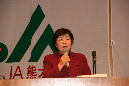 戸田陽子部長が「今まで培われた裏方で支える女性部の生き方を基本とし、その力を結集して女性の声を表に出し、JA女性らしい活動を展開していきたい」とあいさつ。