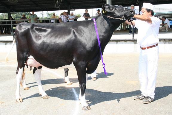 審査報告では、審査長で熊本県農業研究センター畜産研究所の稲葉孝二所長が「各クラスとも発育良好で、手入れの行き届いたバランスの良い家畜が多かった」などと総括。乳用種牛の部でグランドチャンピオンに輝いた小嶺篤さん(41)は、「受賞は大変うれしい。今後の畜産経営で励みになる」と喜びの感想を話しました。