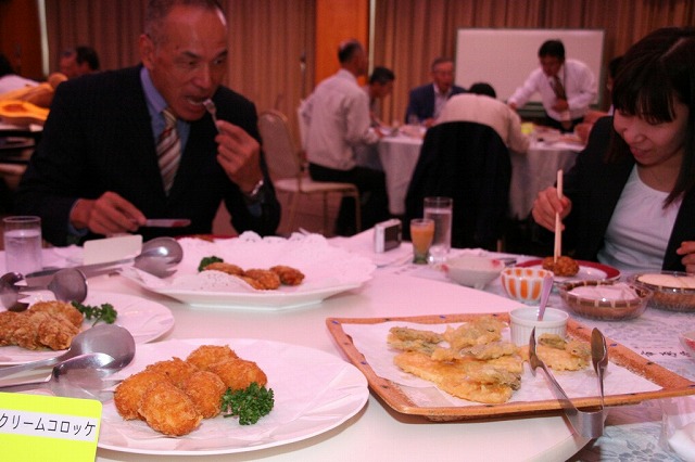 試食会にはJA役員や生産者のほか、九州農政局や県・市の関係機関、メニューを開発した業者ら約30人が出席。JA農業支援センター運営委の藪田征治委員長は「食材としての価値や認知度の向上を図るため、評価の高いメニューから商品化していきたい。商品化と並行し販路も模索していく」と展望します。