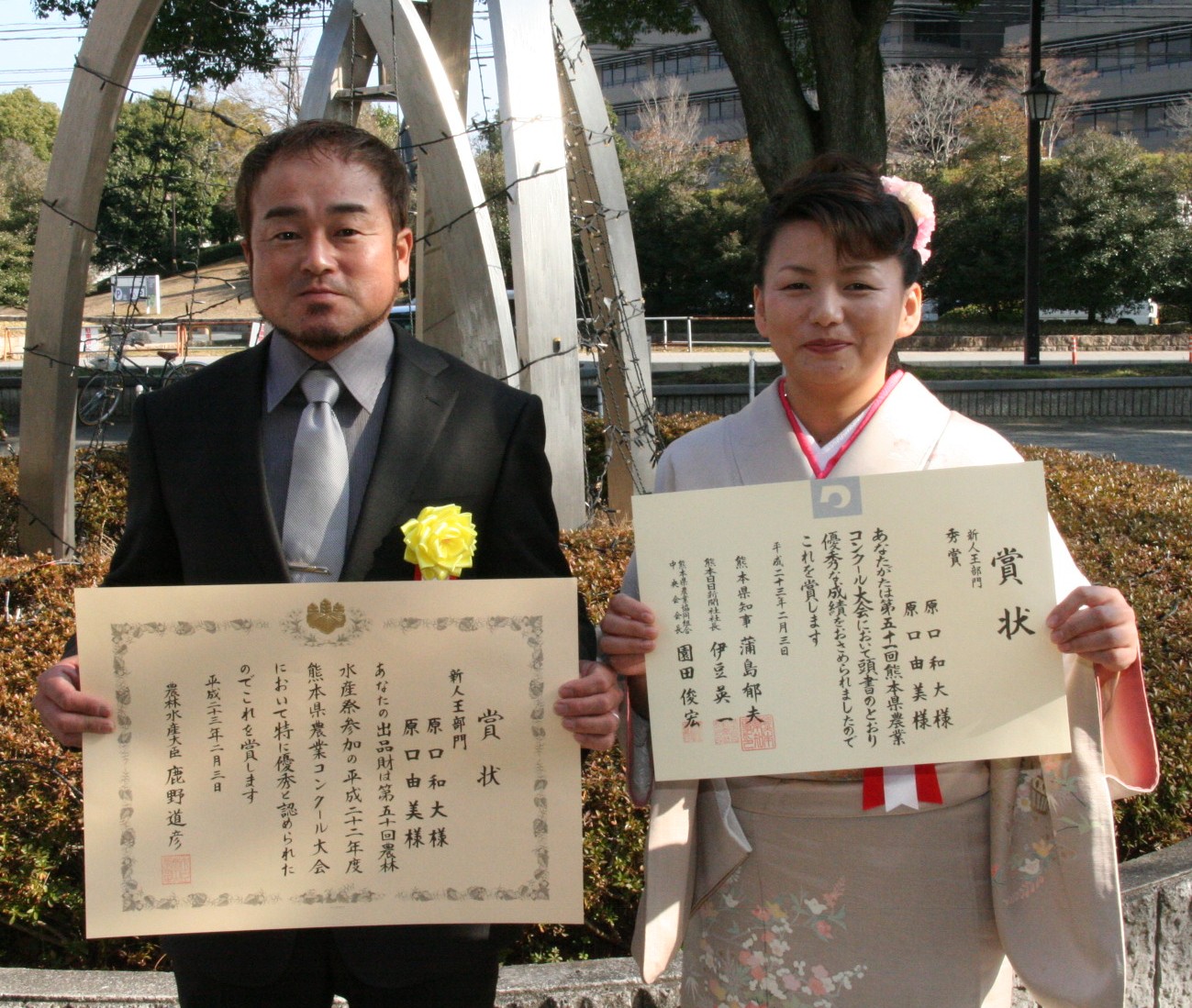 原口さん夫婦は秀賞及び農水大臣賞を受賞