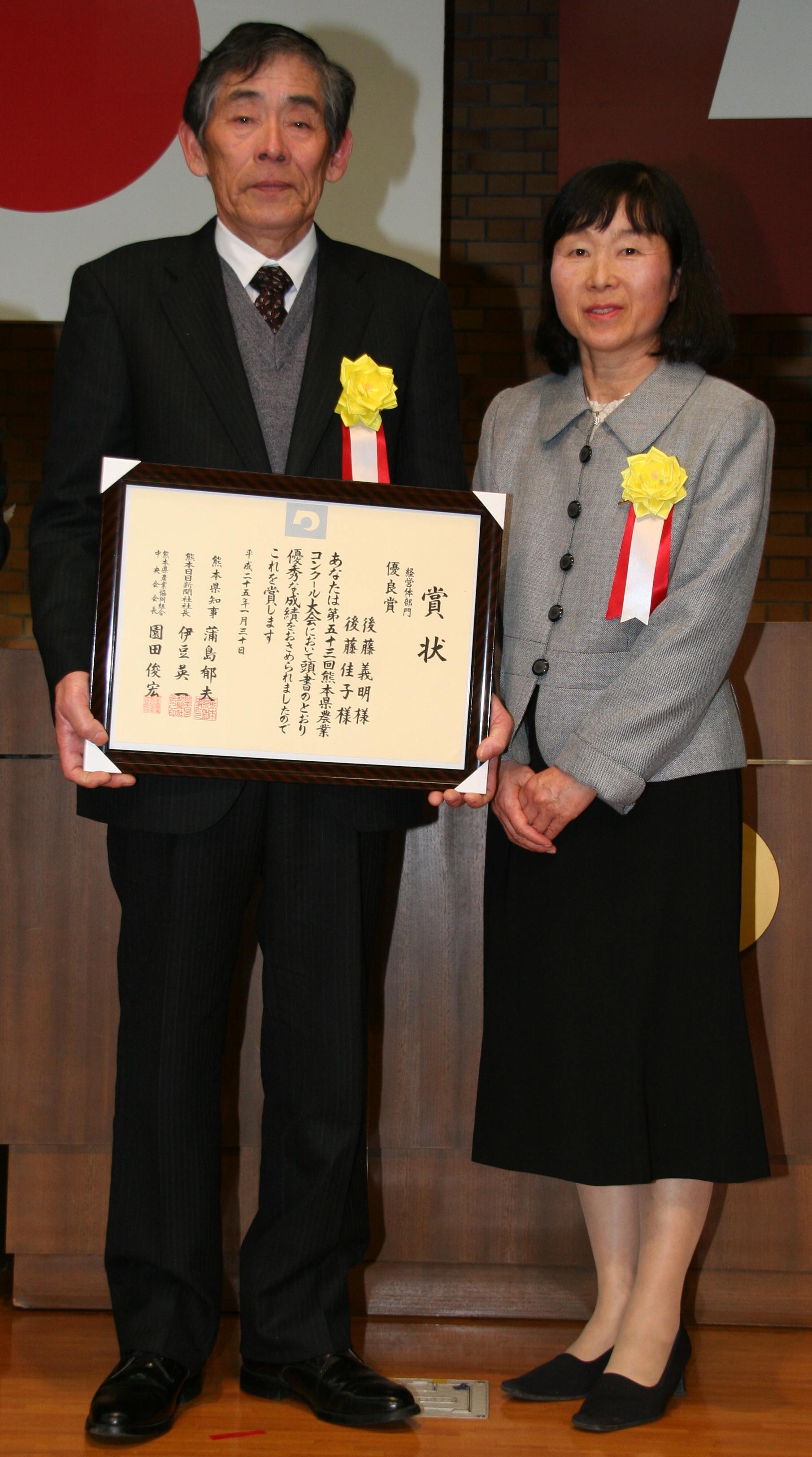 経営体部門優良賞の後藤さん夫妻