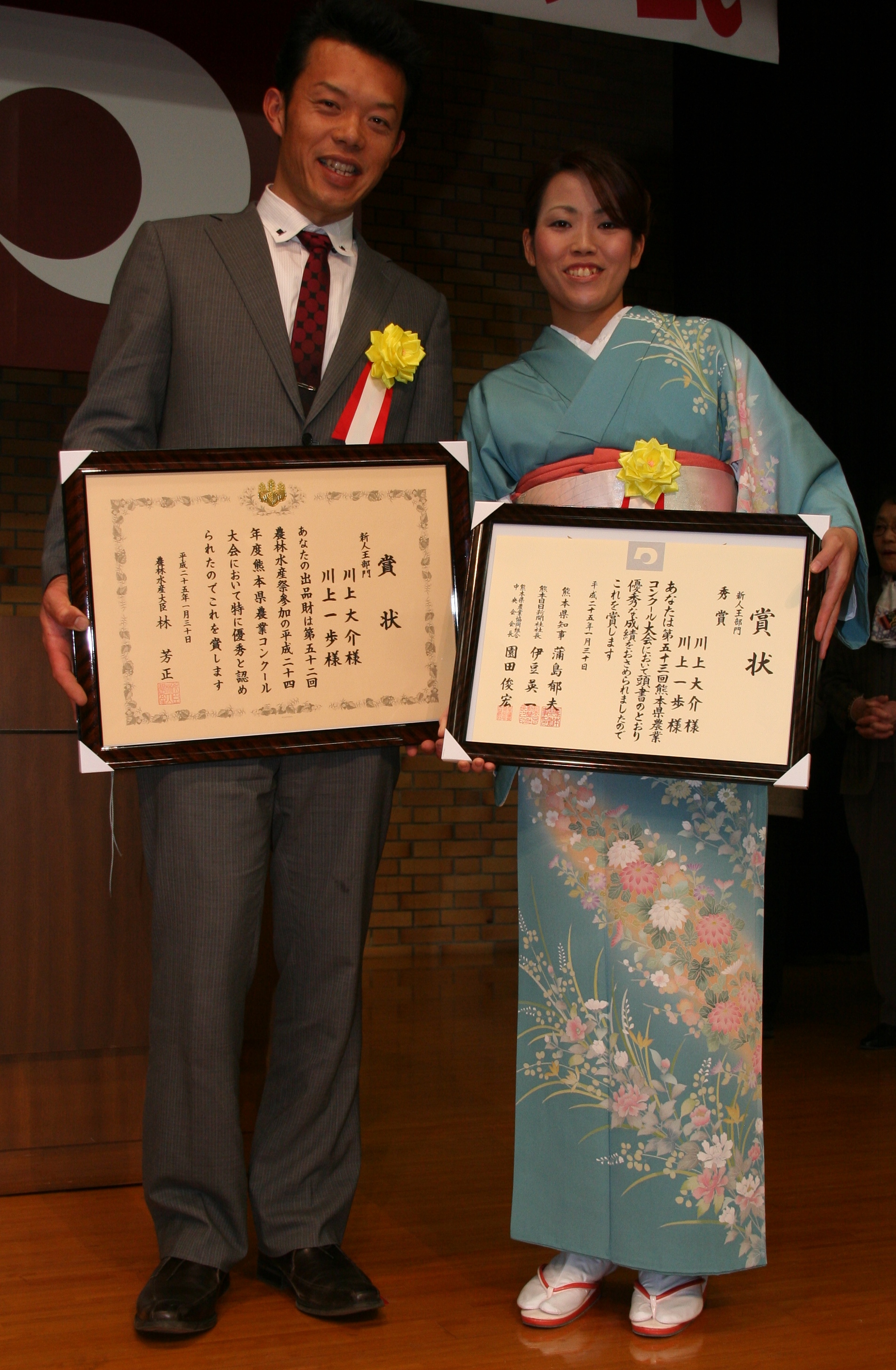 新人王部門秀賞(農林水産大臣賞受賞)の川上さん夫妻