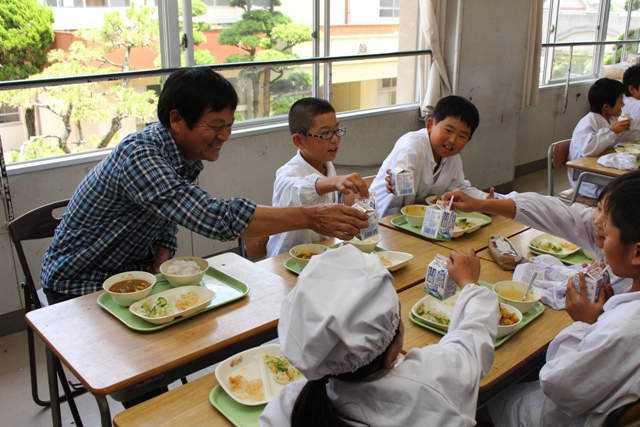 中島小学校の3年生と一緒に給食を食べました