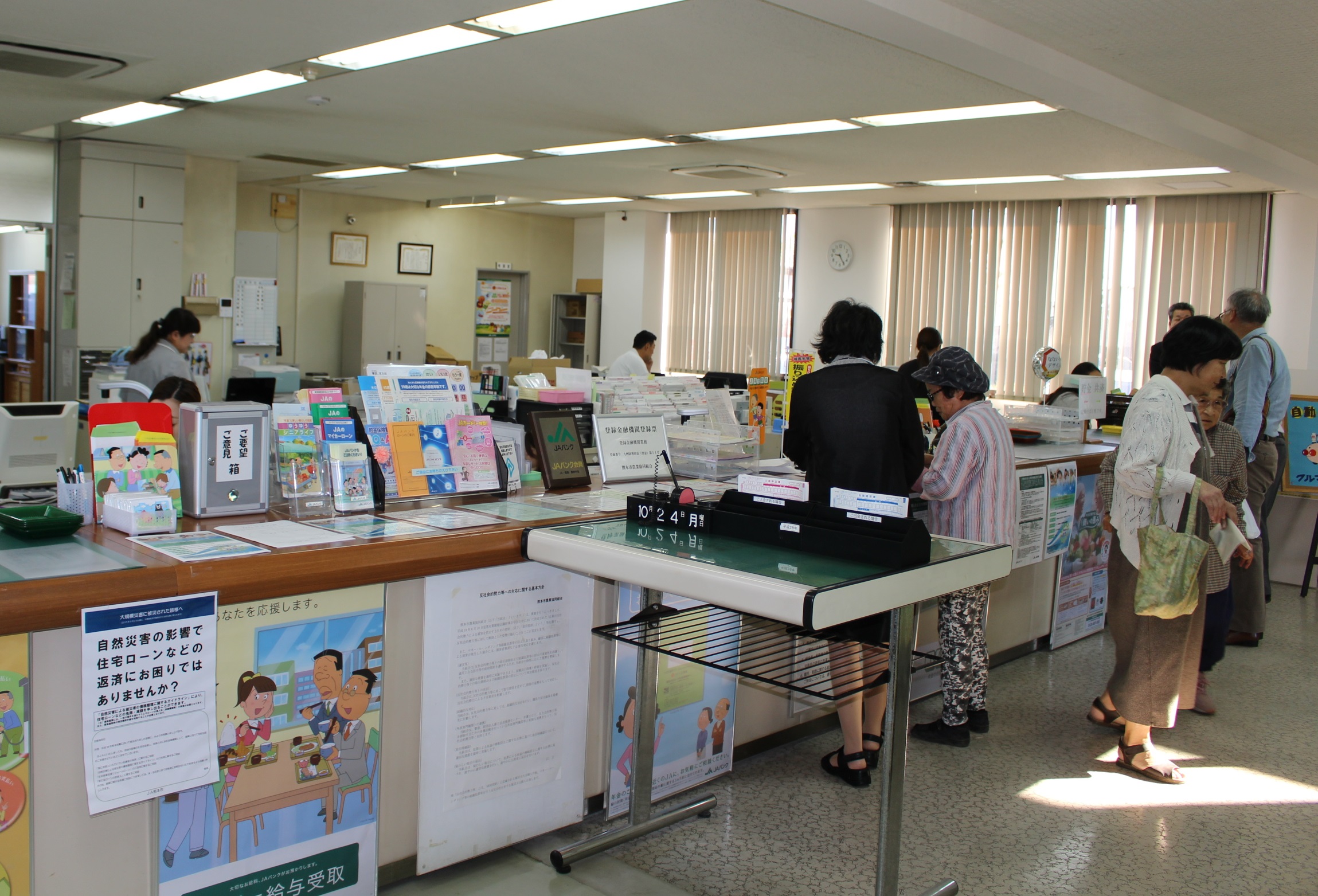 JA熊本市は組織整備に伴い八分字支店を飽田支店に統合し、10月24日、新体制で営業を始めました。支店事務所の壁の撤去やカウンターの向きなどを改装し、開放感あふれる窓口になっています。宮本隆幸組合長、飽田支店担当の中野喜三郎理事、村中信一理事があいさつ。来店者には上熊本女性部加工場の部員による紅白饅頭150パックが配られました。