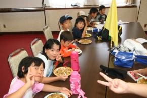 昼食は、本店営農部の女性職員ら手作りのナスや玉ネギ、ジャガイモなどJA夢未来直売所に並ぶ朝採り野菜を使ったカレーを味わいました。