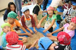 JA熊本市は9月18日、同市会富町であぐりキッズスクールを開き、児童41人がみそ造りや、野菜の植え付けと種まきを体験しました。
