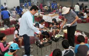 父母や担任職員らと一緒にバーベキュー |