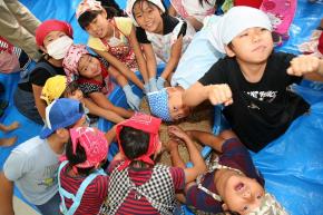 JA熊本市あぐりキッズスクールの児童70人が第4回目となる9月15日、JA飽田支店で麦みそ造りに挑戦し、みそ造り(3日間)の3日目の作業を体験しました。