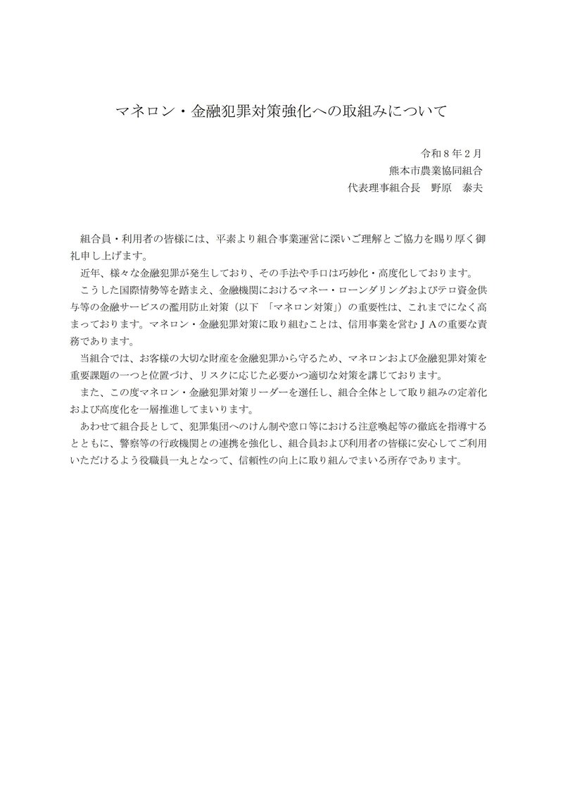 マネロン・金融犯罪対策強化への取組みについて