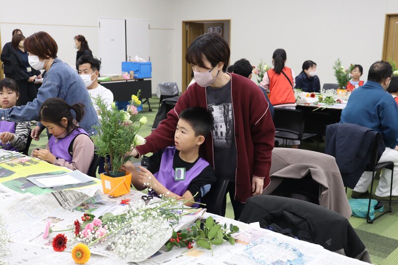 【第7回】フラワーアレンジメント・餅つき体験・閉校式フラワーアレンジメントでは大保農園さんを講師に迎え、スクール生は思い思いに花を植え付けました。次に場所を移動し、本店駐車場で餅つき体験を実施。スクール生は重たい杵をしっかりと握り、掛け声に合わせて熱々のお餅をつきました。 最後に令和7年度第17期あぐりキッズスクールの閉校式を行い、永井豊校長がスクール生を激励しました。