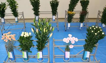 花生産者の意欲向上と地域農業の振興を図ろうと、JA熊本市田迎専門部会は12月18日、南部支店で切り花品評会を開きました。