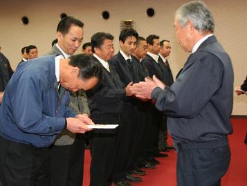 式では21年度長期共済目標を12月末で達成した総合支店の支店長らが、村上組合長から表彰されました。