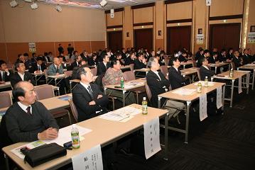 県産業技術センターの坂井滋顧問と県中小企業団体中央会の村上静雄指導部長が基調講演。坂井氏は農業が日本のもの作りの源とし、「熊本の宝を活かすには農漁業者と加工・流通業者との連携が不可欠。互いが補完し合う事で発展につながるのでは」などと提言。村上氏は国が認定する農商工連携事業の要件やメリットについて解説しました。