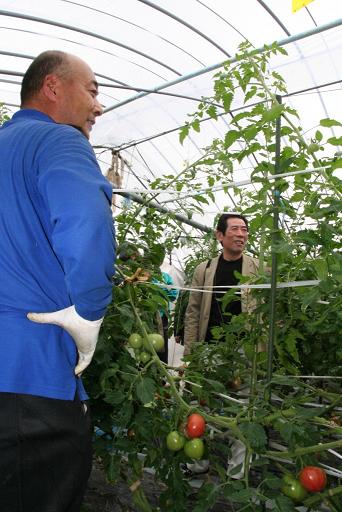 ホテルのシェフらで構成する全日本司厨士協会や量販店の青果物バイヤーらは、管内西南地区の施設園芸(メロン・トマト・ナス)と露地野菜(スティックセニョール)の栽培圃場や同市会富町のJA野菜選果施設を視察。生産者やJA営農指導員らの案内で、全戸がエコファーマーの生産部会で取り組む減農薬栽培や、ハウスの気密性を高めるための省エネ設備などのほか、農産物の集荷から選果・出荷に至る選果施設の工程などを見学しました。