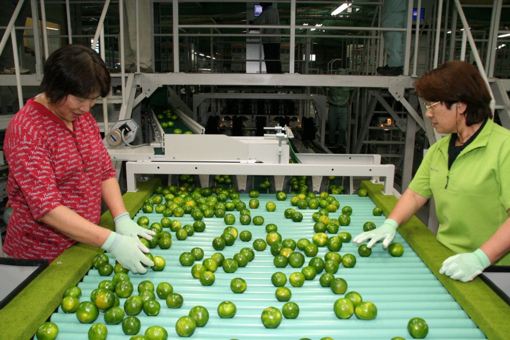 温州ミカンの極早生品種「肥のあかり」の選果が9月19日、熊本市河内町のJA熊本市夢未来柑橘選果場で始まり、導入したばかりの次世代型選果機で選果した約30トンのミカンを関東の市場を中心に初出荷しました。店頭初売りは21日。