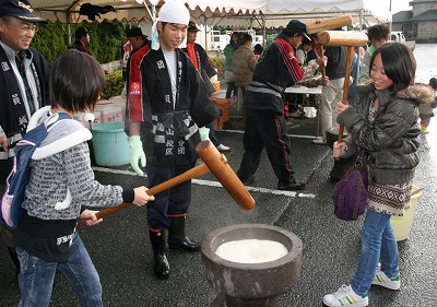 会場では、地元消防団によるもちつきも行われ、地域が活気に満ちていました。