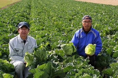 JA熊本市キャベツ部会はエコファーマーの70人が40ヘクタールで栽培。堆肥主体の土作りを基本に、持続性の高い農業生産方式を実践します。部会では、霜に強く低温でも生育が旺盛な春玉系品種「彩々丸」の生産を推進。葉質の柔らかさと甘みが特徴で、収穫間際に寒い時期を迎えるため病害虫被害もほとんど見られません。