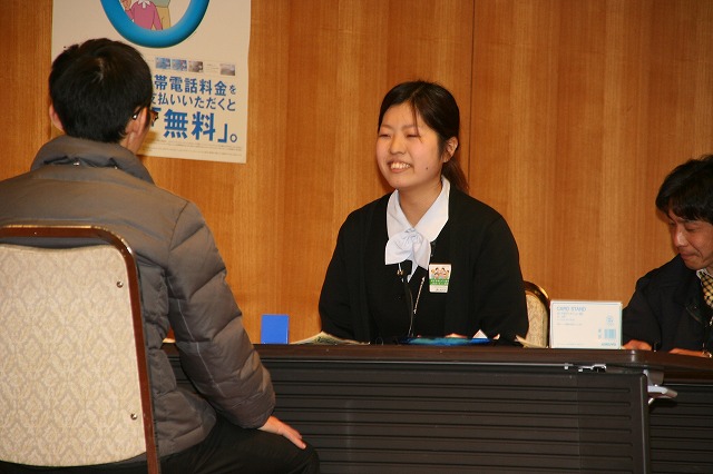 各総合支店代表のテラー役12人が、顧客・上司役との3人一組で出場。新規口座開設(普通貯金)の共通課題に加え、顧客のニーズに合ったセールスを実際の窓口対応を想定して披露しました。