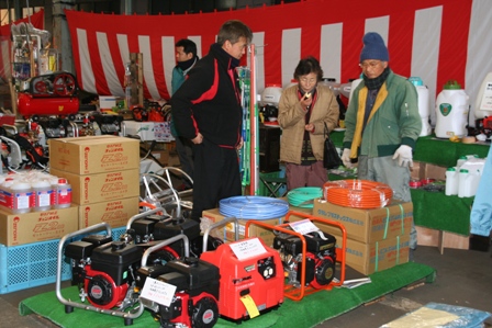 農薬肥料等40品目を通常価格より割安で販売し、農機具や海産物、生活用品なども展示販売。会場には指導員が駐在し営農相談会も実施しました。2日間の目標売上金額は3000万円です。