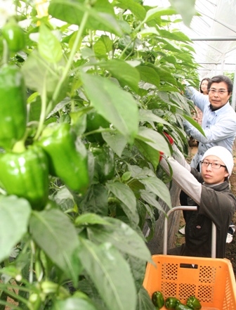 JA熊本市東部ピーマン部会は、生産農家13人が約4㌶(前年同)で栽培していいます。部会では、農薬低減のため今年からスワルスキカブリダニを天敵として導入。他に、防虫ネットや粘着版を利用。安全・安心なピーマンの生産に努めています。息子の聖二さんは「今年も品質のいいものが出来ている。愛情をかけて育てたので、消費者の方に是非食べてもらいたい」と話しました。